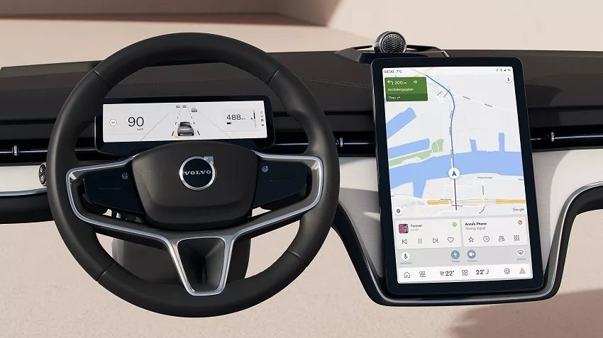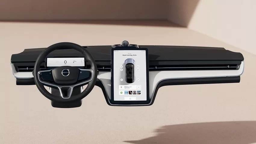 V elektrickom Volve nebudú takmer žiadne fyzické tlačidlá a hlavnými prvkami na palubnej doske budú dva displeje. Menší slúži pre vodiča a poskytne mu iba potrebné informácie pre jazdu ako rýchlosť, dojazd atď.